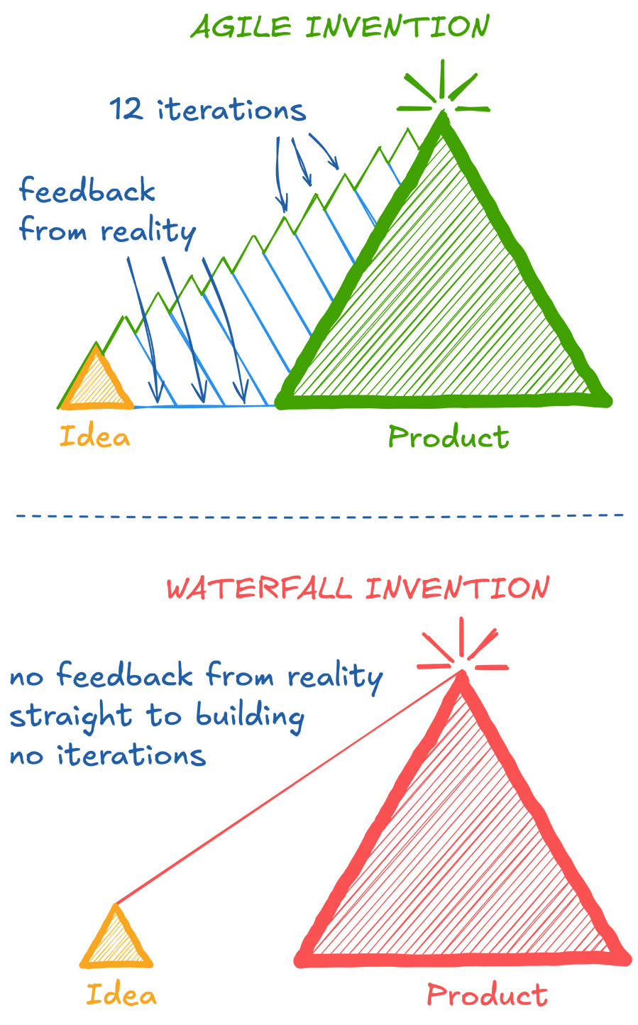 At every step, we are agile, we refine the idea by imagining or seeing how it interacts with reality - and adapting it accordingly. The more ambitious the product, the better rooted in reality it must be.Great software isn’t invented in isolation. It’s discovered through observation, shaped by iteration, and perfected through use. What looks like a stroke of genius is often the result of relentless refinement.The Agile Invention Framework teaches you how to adapt your product to reality before launch.