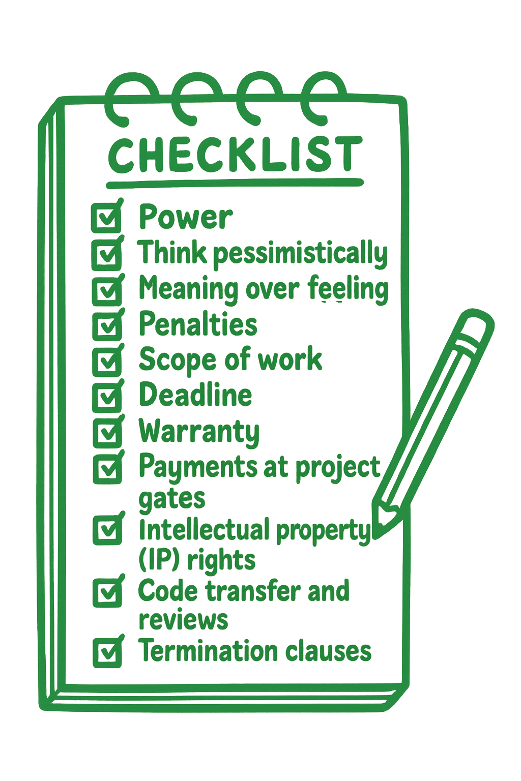 In The Agile Invention Framework, I’ll walk you through the most important principles to keep in mind when reviewing contracts with a development agency.Some principles apply to all contracts and some are specific for software development.Creating a solid and fair contract will help you avoid costly mistakes. You will get my honest perspective as an agency manager.